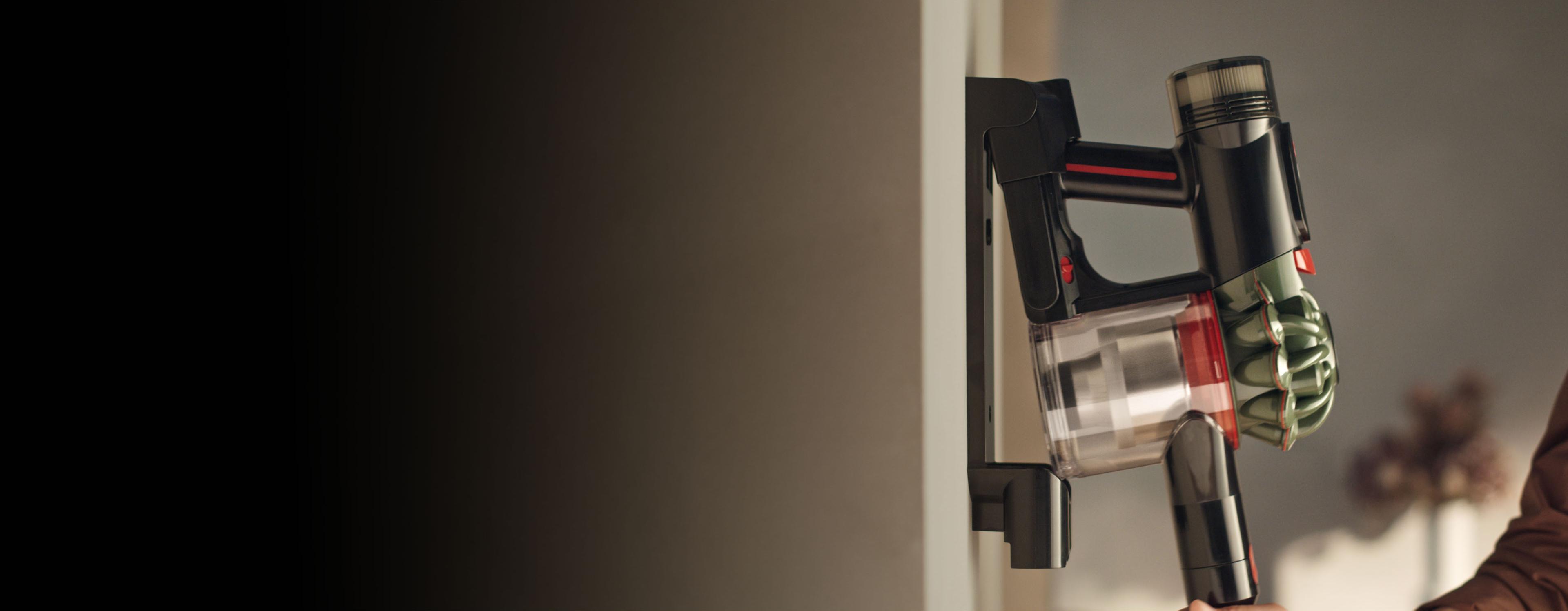 Zidna priključna stanica za punjenje usisivača i uredno odlaganje alata.