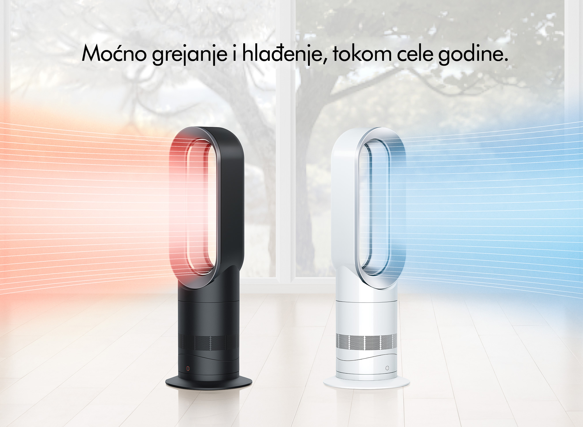 Izaberite između fokusiranog i difuznog režima za lično ili grejanje cele prostorije.1 I direktno hlađenje ili blagi povetarac po vrućem vremenu.