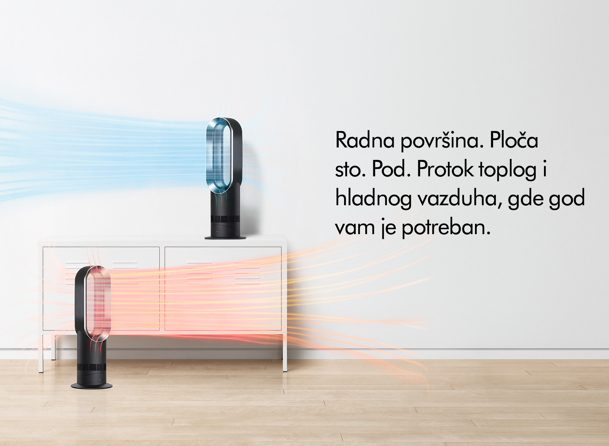 Pojačava okolni vazduh obezbeđujući kontinuirani tok blagog protoka vazduha.